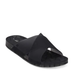 - Synthetic uppers in a translucent cross strap slide style